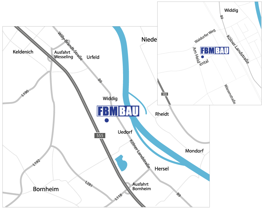 Ausfahrt Bornheim nehmen, dann links abbiegen. An der nächsten großen